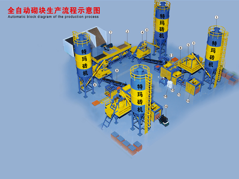 全自動(dòng)砌塊生產(chǎn)流程示意圖
